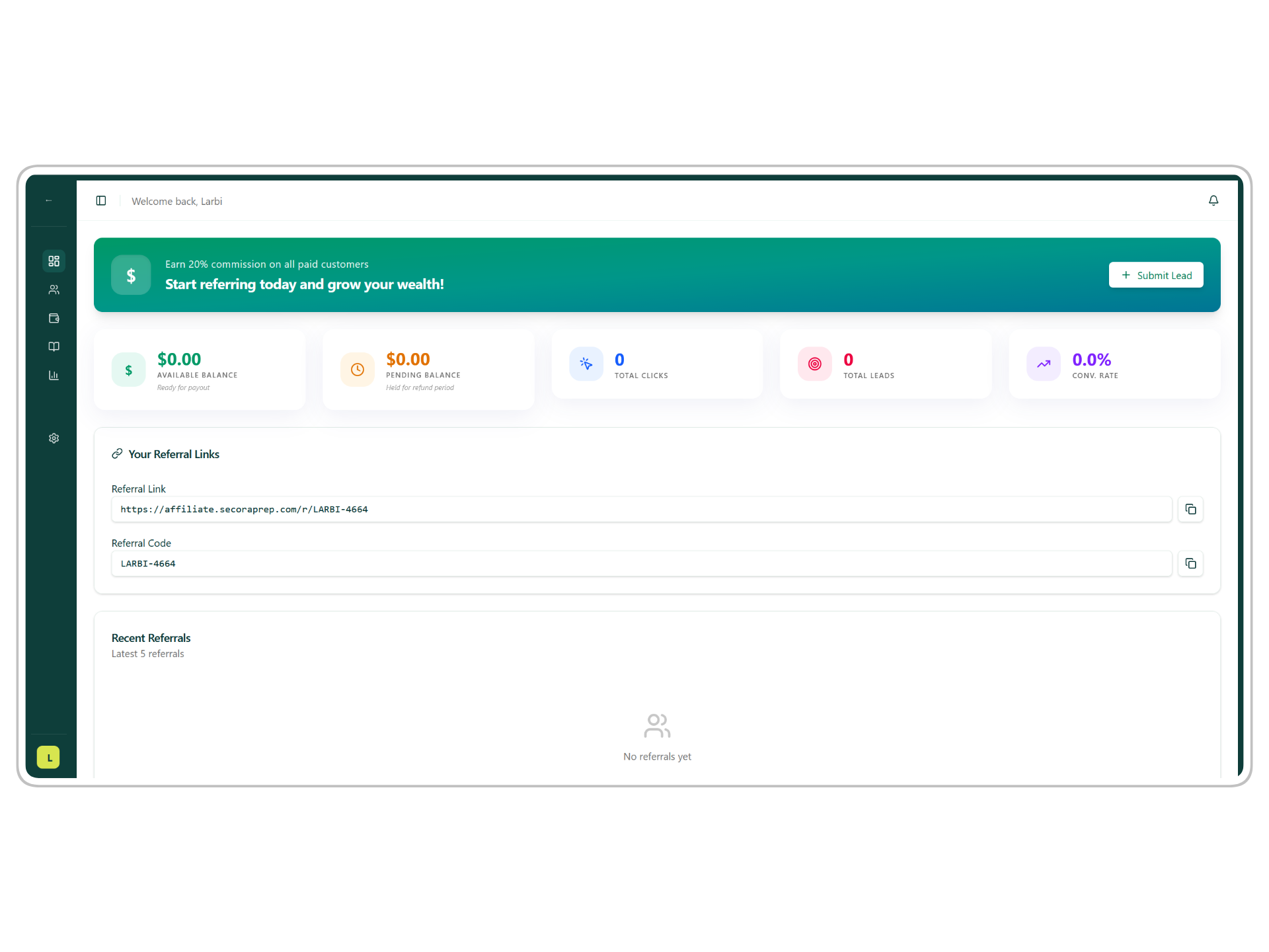 SecOraPrep Affiliate is the dedicated management engine powering the referral ecosystem for the SecOraPrep cybersecurity platform. Built to handle high-volume partner traffic, it provides a seamless bridge between security professionals and the enterprise training services they recommend.